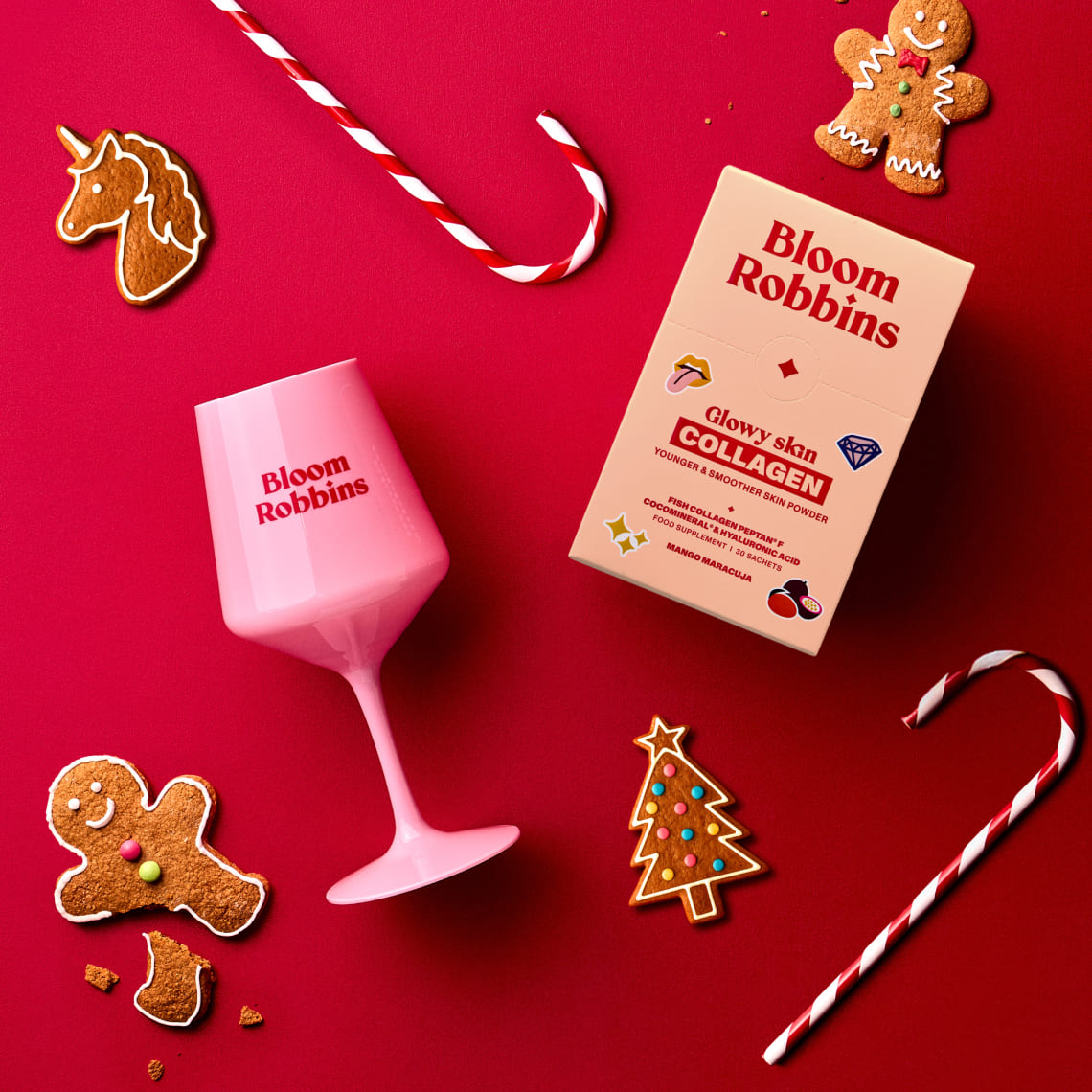 VÁNOČNÍ GLOWY SKIN KOLAGEN SE SKLENIČKOU Kolagenový nápoj pro zářivou pleť v 3 příchutích