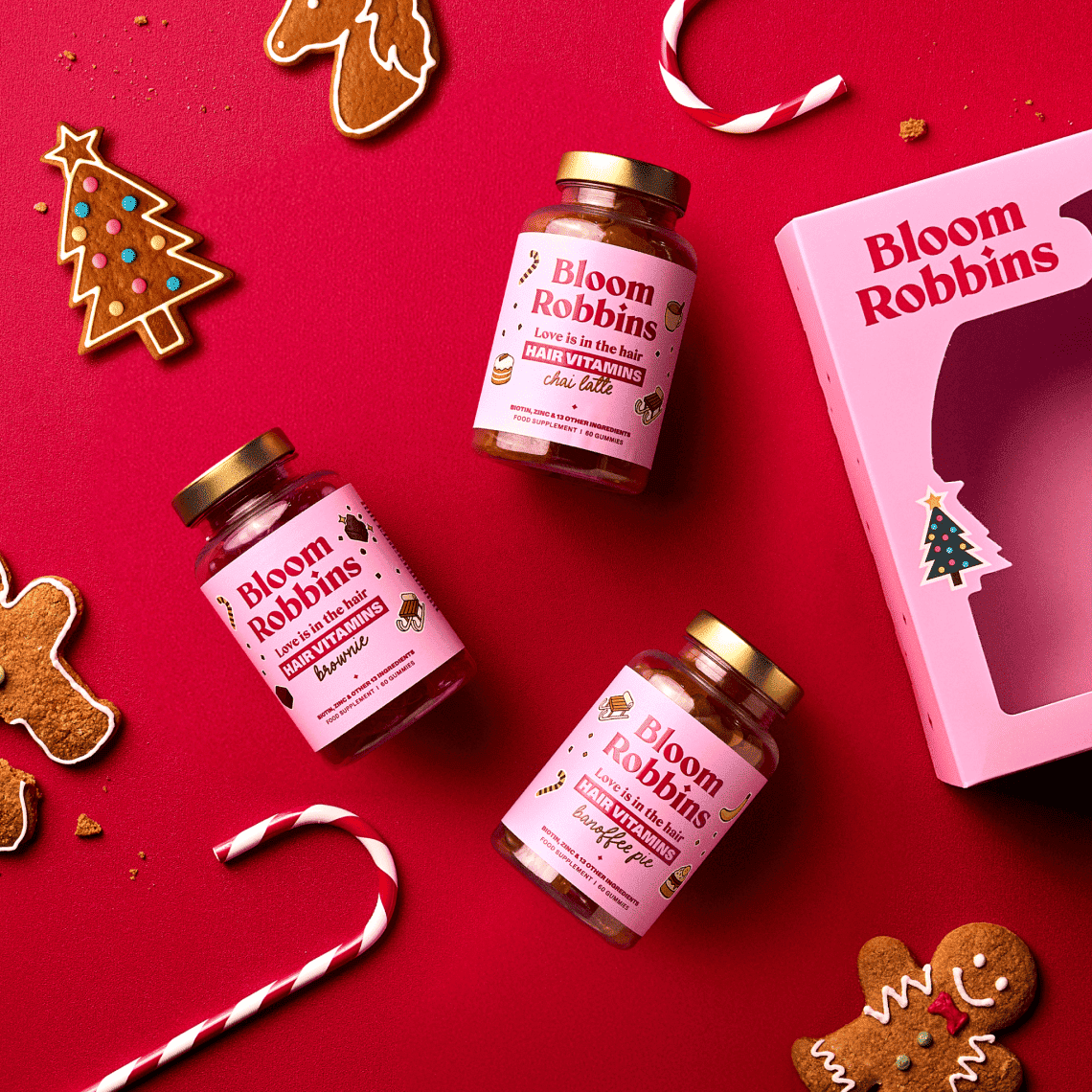 Winter Trio Limitka: Vitamíny na vlasy s biotinem Gumídci na vlasy s 3 příchutěmi cukroví