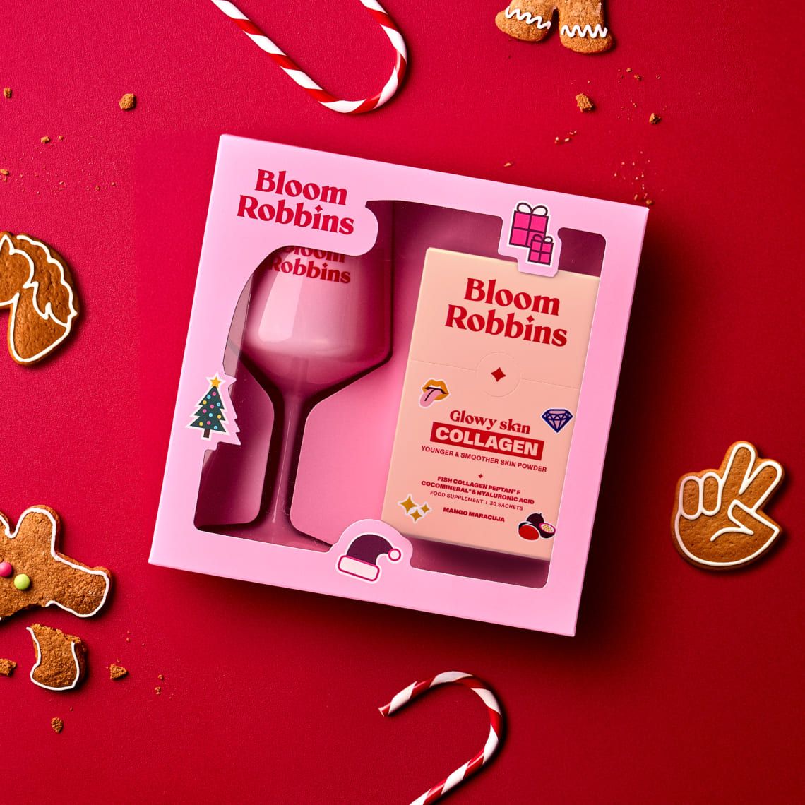Balíček obsahuje kolagenový nápoj Glowy Skin Collagen, který spojuje sílu dvou typů mořského kolagenu Peptan® a vitamínu C pro podporu pružnosti a svěží vzhled pokožky. Recepturu doplňuje kyselina hyaluronová a kokosová voda Coco Mineral® pro intenzivní hydrataci pleti.