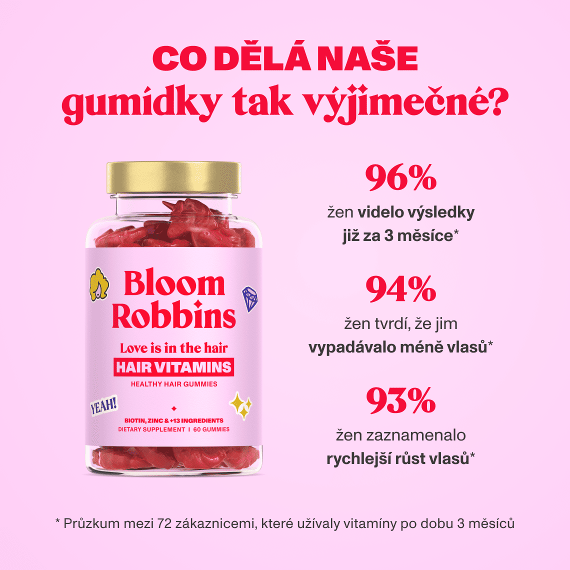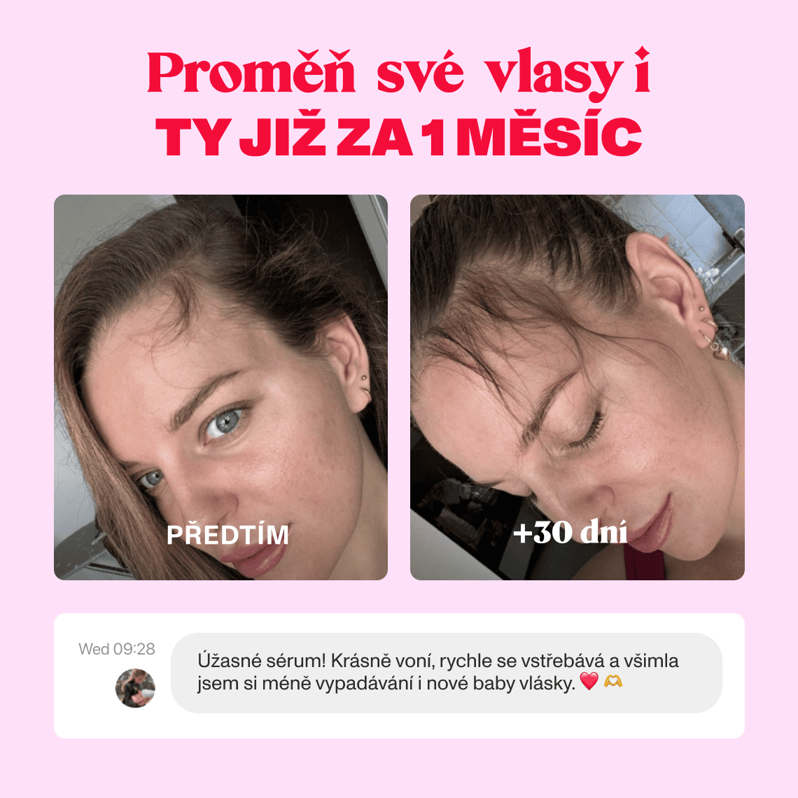 Vlasy jsou pevnější, méně náchylné k lámání a postupně se objevují jemné nové baby vlásky.