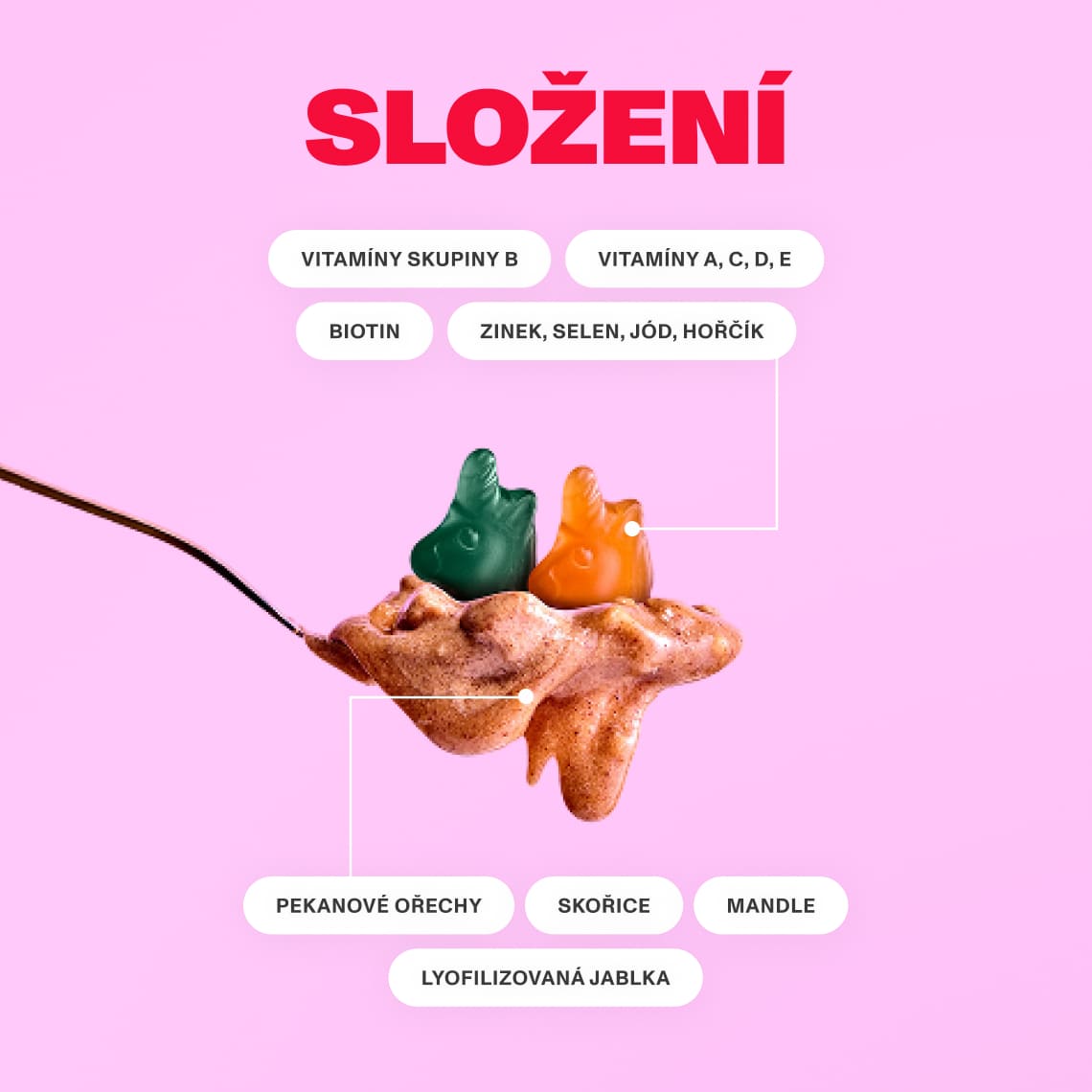 Vitamíny na vlasy s biotinem a krém s chutí jablečného koláče
