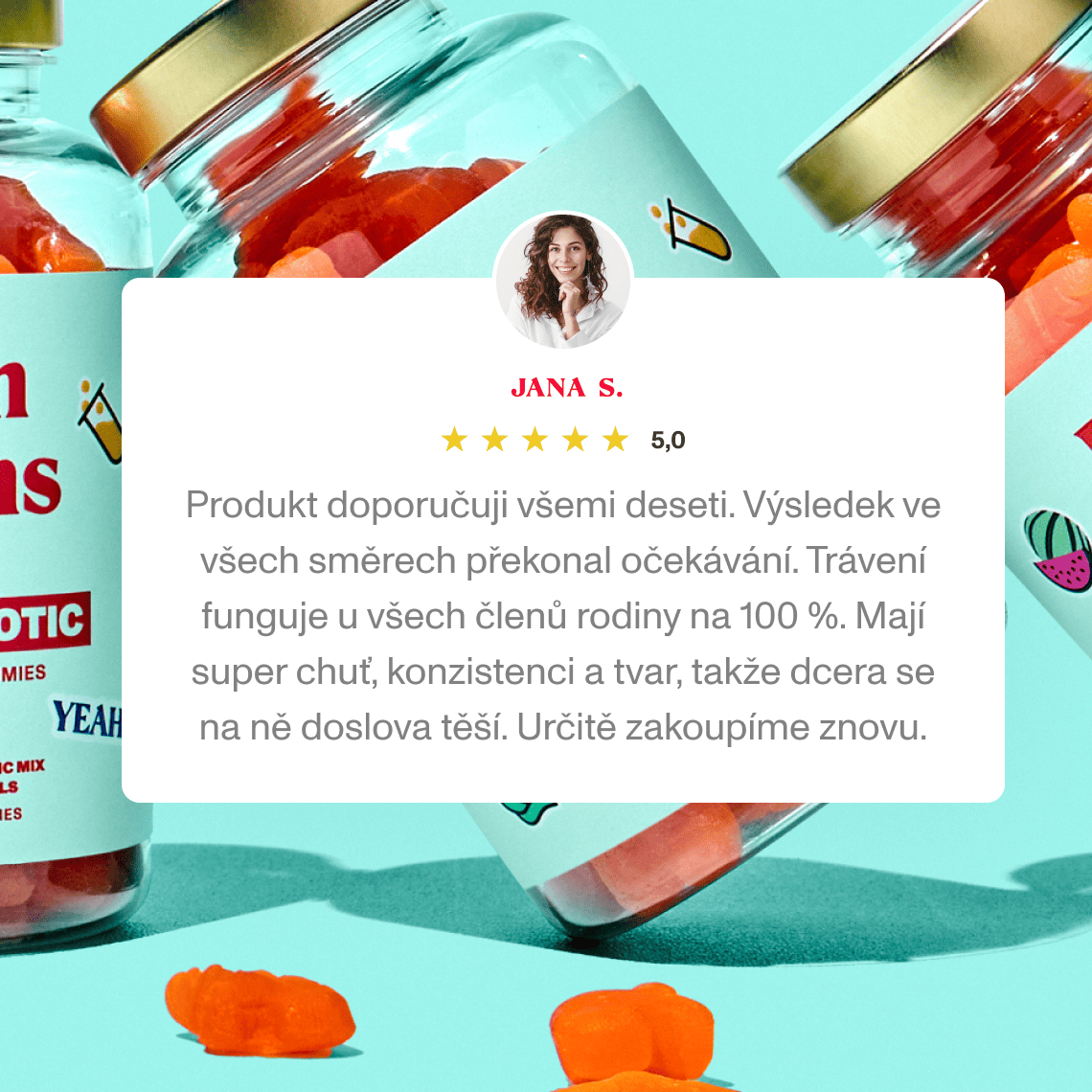 Probiotika ve formě chutných gumídků může s radostí užívat celá rodina, včetně dětí od 4 let.