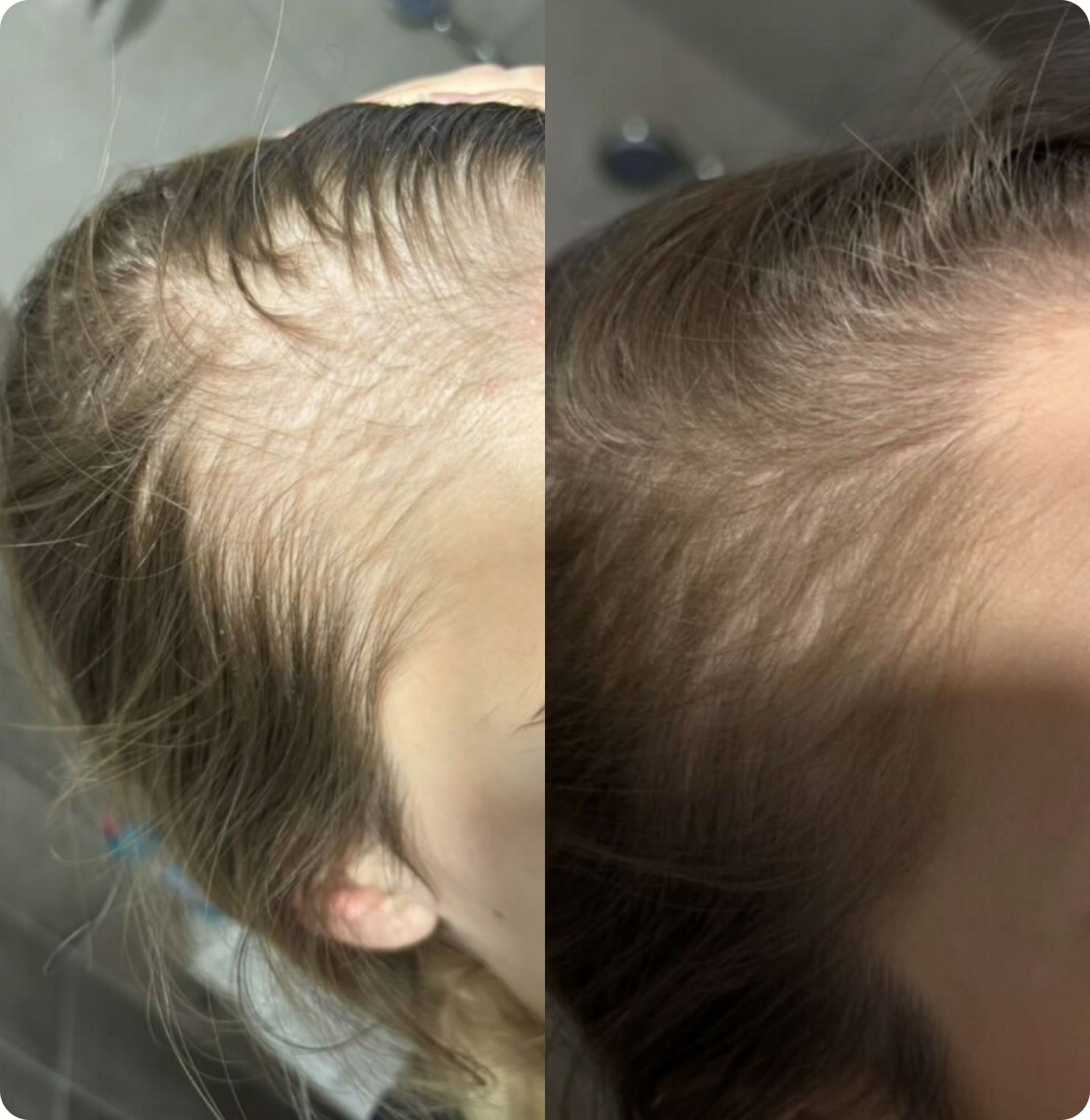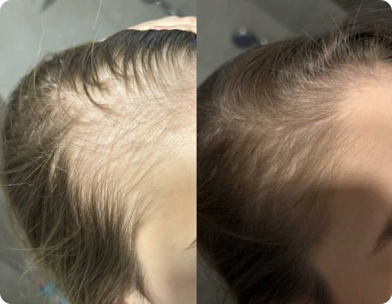 Začínají být viditelné nové vlásky, což signalizuje obnovu folikulů. Vlasy jsou odolnější, méně se lámou a jsou objemnější. Pokračující výživa a stimulace pokožky hlavy podporuje růst a hustotu vlasů.