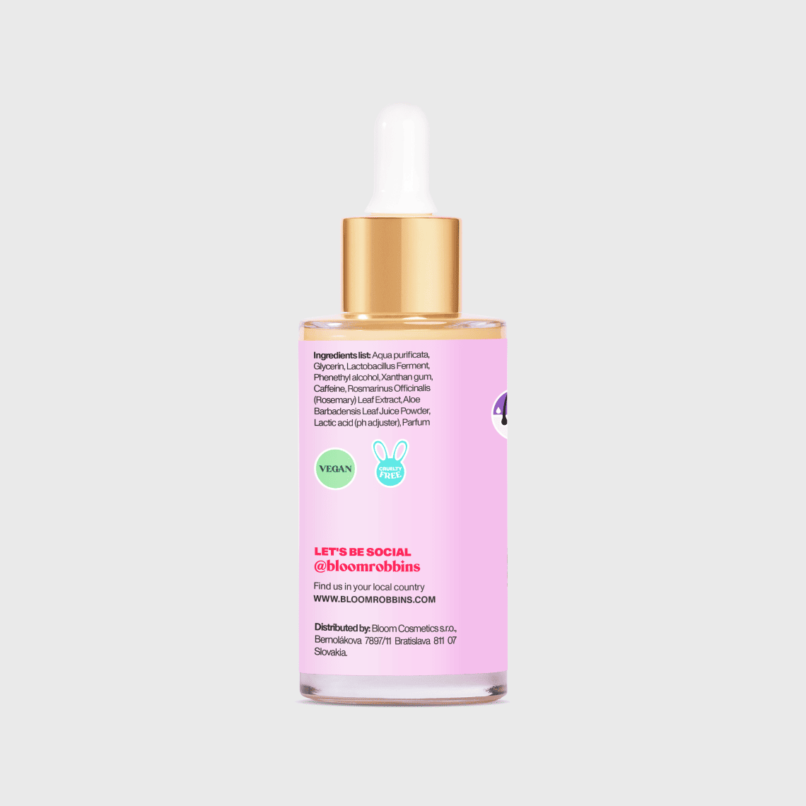 Aqua purificata, Glycerin, Lactobacillus Ferment, Phenethyl alcohol, Xanthan gum, Caffeine, Rosmarinus Officinalis (Rosemary) Leaf Extract, Aloe Barbadensis Leaf Juice Powder, Lactic acid (pH adjuster), Parfum